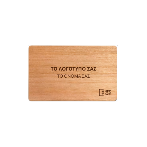 Premium ξύλινη NFC κάρτα από Κερασιά με laser χάραξη και μοναδικό URL (nfctag.gr/όνομα).